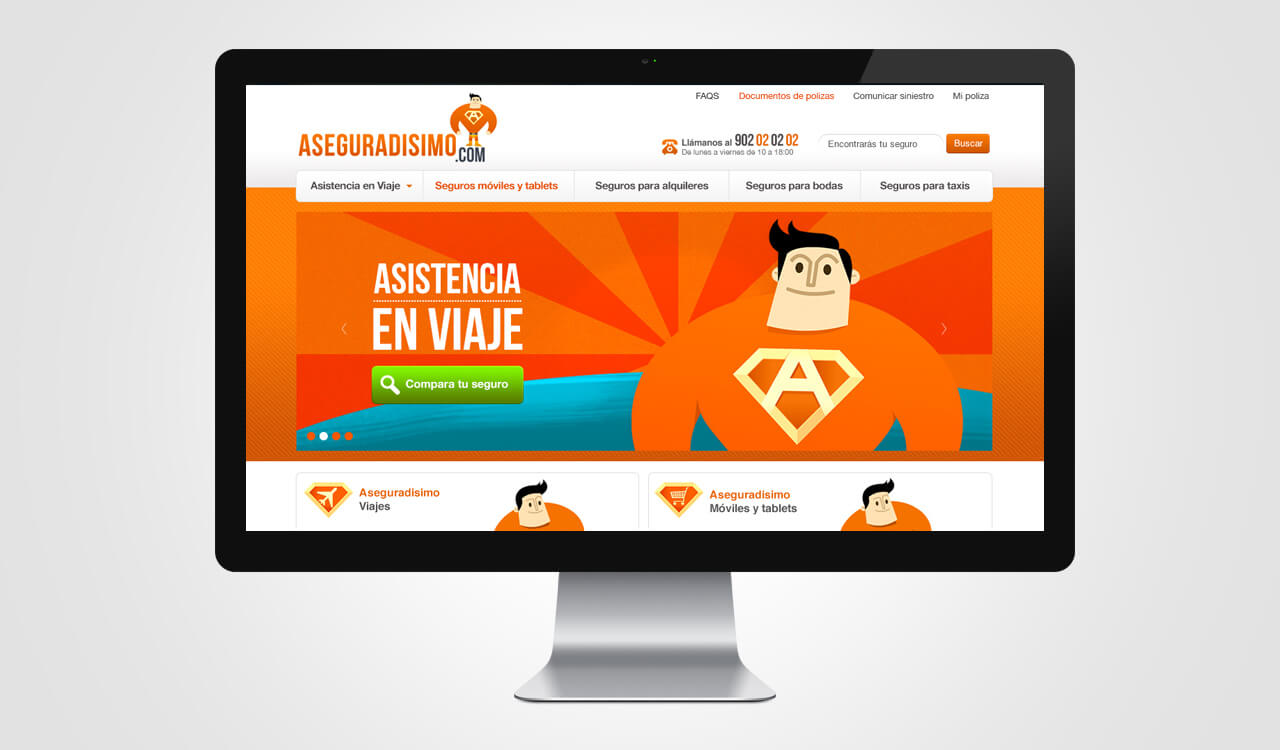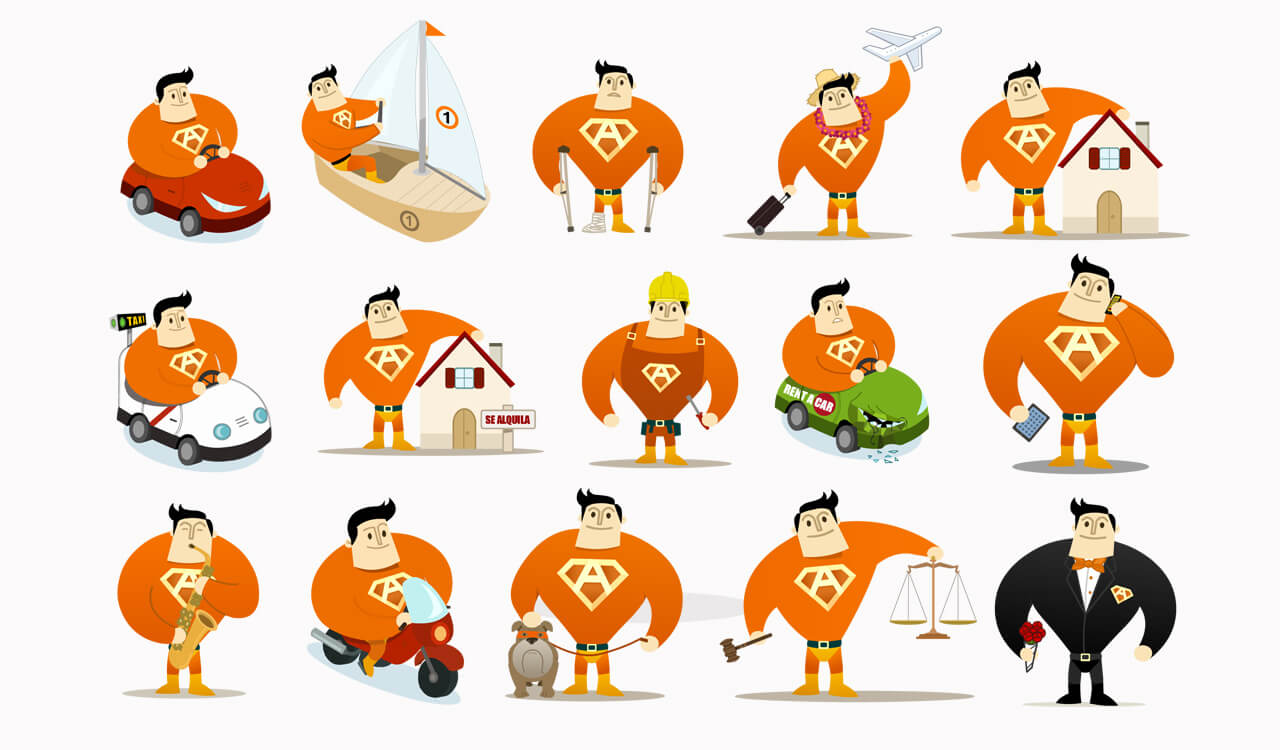 El objetivo de representar a un superheroe y asociarlo con un comparador de seguros online, era el de humanizarlo, desprenderlo de toda la áurea tecnológica que rodeaba el proyecto y enfocar la parte visual a un super-hombre capaz de conseguirte el mejor seguro para ti, aseguradisimo. Del primer personaje nacieron poco despues más de diez submarcas especificas para cada producto, donde nuestro protagonista se representaba con una acción u objeto para vincularlo a un producto especifico.